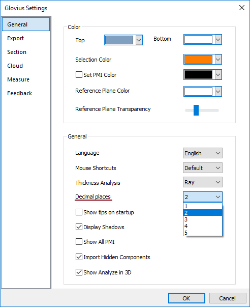 Here are the steps to change the number of decimals places when measuring in Glovius –