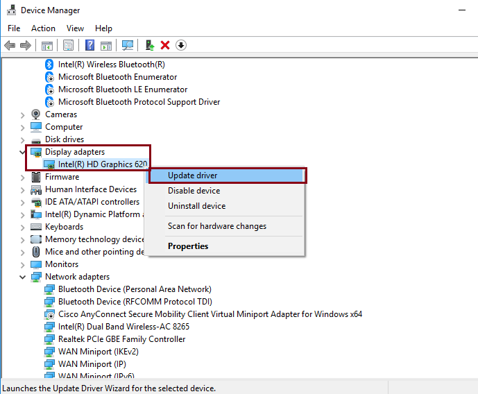 • Right-click your video card’s name. Doing so prompts a drop-down menu.